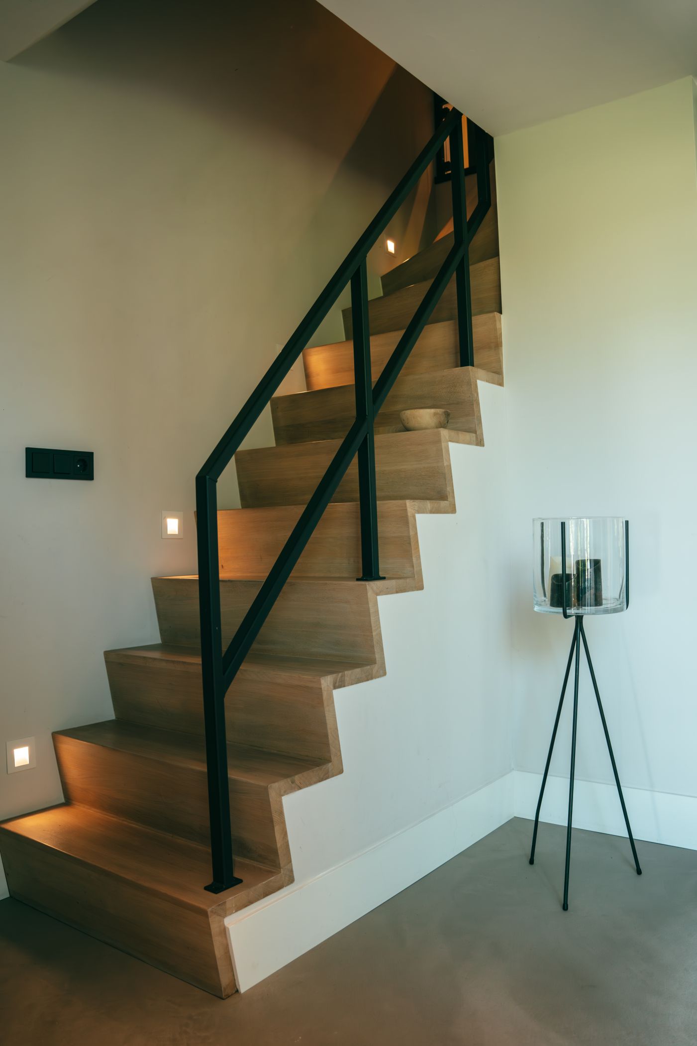De woning is voorzien van aluminium kozijnen, die niet alleen zorgen voor een moderne uitstraling, maar ook bijdragen aan de duurzaamheid en isolatie van het huis. De slanke profielen van de kozijnen geven de gevels een elegante uitstraling, terwijl ze zorgen voor veel natuurlijk licht in de binnenruimtes.Een Huis dat Verbonden is met het Landschap
