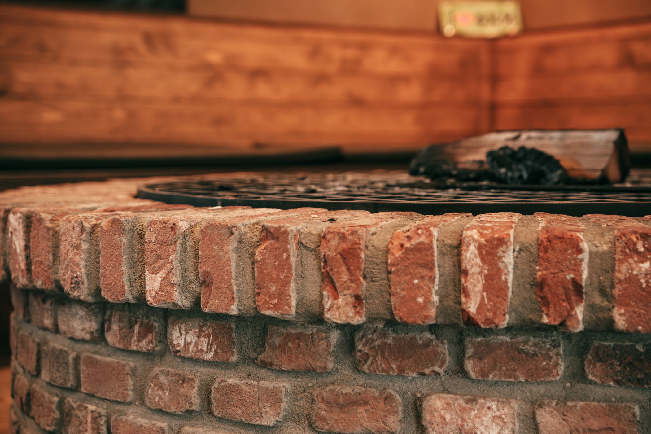 Sfeervolle binnenruimte in Ede met op maat gemaakte zithoek rondom een authentieke vuurplaats, met een combinatie van hout en baksteen