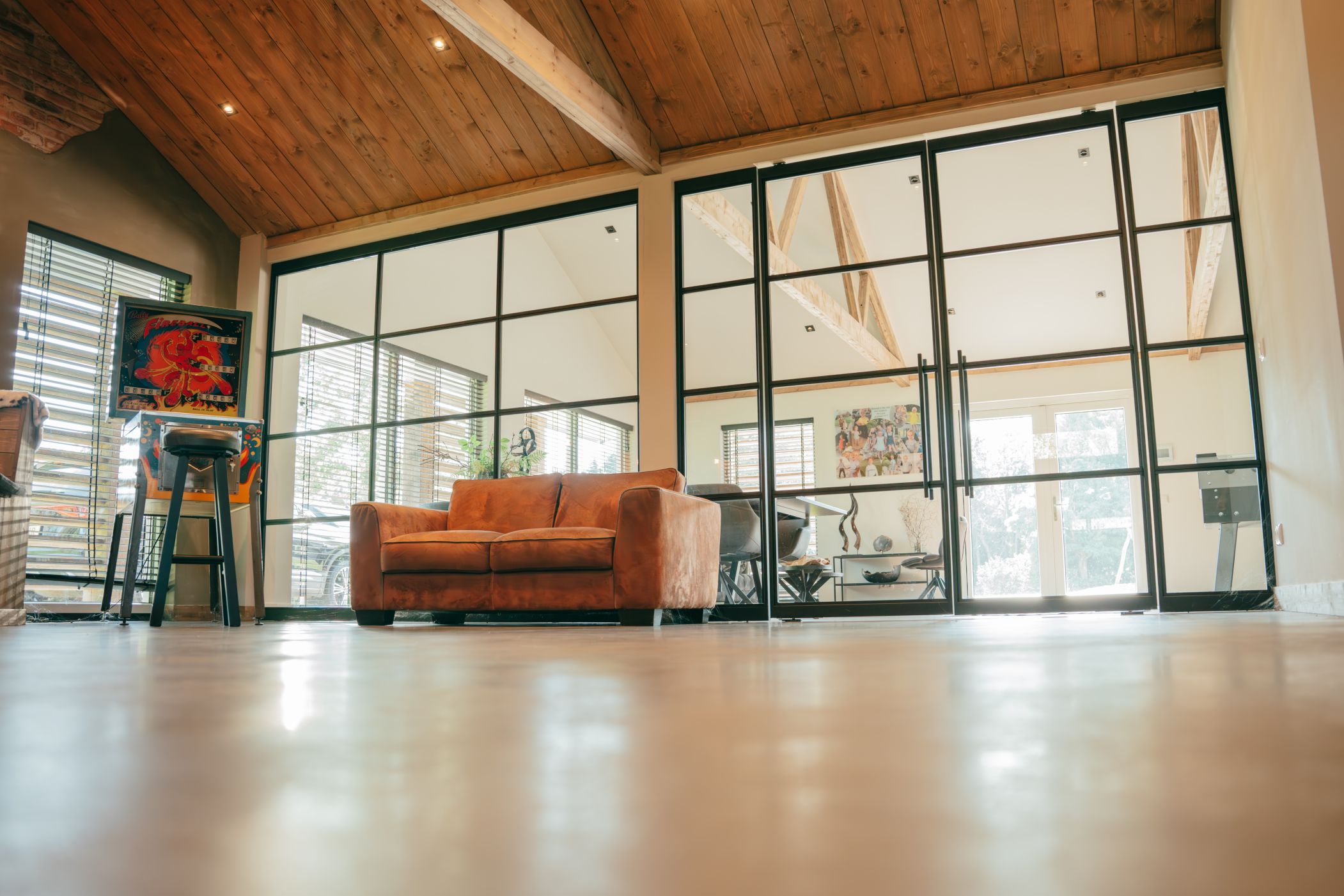 Aangrenzend aan het kantoor hebben we een bijzondere zakelijke ruimte gecreëerd, ideaal voor bijeenkomsten en vergaderingen. Deze ruimte combineert een warme, authentieke sfeer met de functionaliteit die nodig is voor een professionele omgeving.